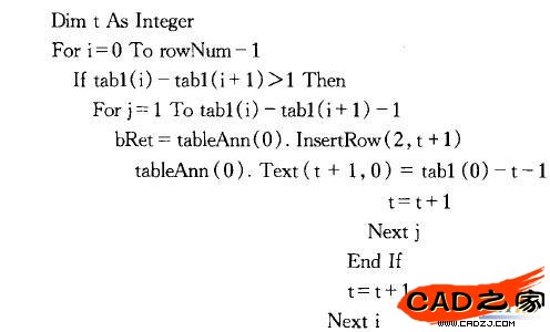 說明:循環判斷是否存在序號不連貫的現象,如果存在,判斷某處需要插人幾個空行,通過TableAnn的InsertRow函數插人到明細欄中,并在序號一欄寫人空缺的序號值。