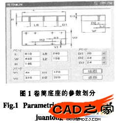 現以起重機的卷簡底座為例,簡單介紹一下本方法的應用。分析卷筒底座的結構特征,建立參數輸入窗口如圖1所示。