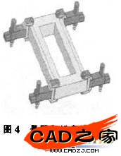 利用SolidWorks 建立懸臂和機身連接的實體模型,如圖4所示。根據研究問題的性質,在建立實體模型的過程中,對一些非接觸配合的凸臺進行了省略,懸臂端面的限位條也省略,機身用一框架結構代替,省略了長船和短船,4個支腿著地時,支腿球頭以一球面約束進行模擬。