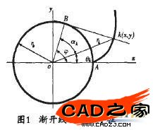建立如圖1所示的直角坐標系。設漸開線上任一點的坐標為(z,y,x)。漸開線的參數方程可表示為;