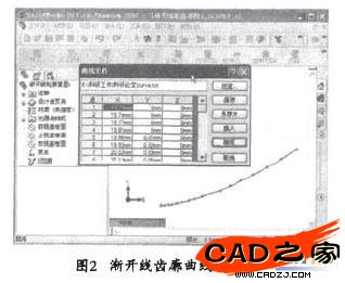 在solidWorks中插入自由端點曲線,調用此漸開線上型值點的坐標文件,可生成齒輪輪廓的漸開線曲線。用上述方法生成一段模數m=2、齒數z=21的直齒圓柱齒輪的漸開線齒廓,結果如圖2所示。
