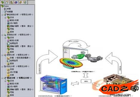 由于篇幅的關(guān)系,筆者無法更多地具體展開論述CAD/CAE系統(tǒng)設(shè)計仿真一體化的發(fā)展趨勢。但可以肯定的是以設(shè)計為導(dǎo)向、分析功能高級化、面向制造的分析、易用且高性能、人性化及智能化、知識工程、開放性等將成為設(shè)計仿真一體化趨勢的典型特征。SolidWorks及其專業(yè)級的CAE分析產(chǎn)品線就是這種趨勢最為典型的代表。