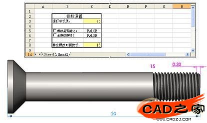 總結:以上的例子只是采用了很簡單的模型,也許簡單的模型并不能充分體現出這種方法的實用性,但針對模型的參數有著較復雜的函數關系時,我們不妨將它的方程式和描述寫入表格中,當然也可以在Excel表格里面加入窗體元素(如:單選框、復選框等)和宏命令。這樣,當你在使用這些零件時只需在表格中設置相應的參數即可。