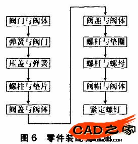 其裝配順序見圖6。完成裝配后,必須進行裝配體的干涉檢查