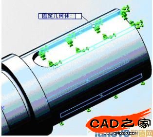 下方的小三角,并單擊下級菜單中的“固定幾何體”按鈕,此時在左側的特征樹中出現對話框。在圖形區域單擊右側上、下兩鍵槽的兩個側面(見圖11),“面<1>”~”面<4>”出現在“夾具的面、邊線、 頂點”框