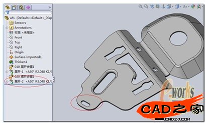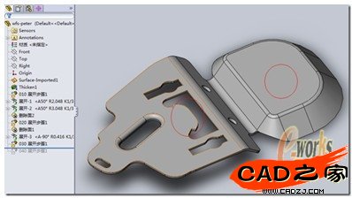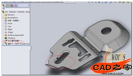 此零件時一個曲面加厚而成,保證了厚度的準確性,建議使用此方法優化零部件(有時候零件設計部不合理或者忘記倒角等通過此類方法優化)