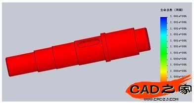 運行分析新的疲勞算例,得出的結(jié)果如下圖所示,傳動軸每個部位的生命總數(shù)都為最大值,破壞數(shù)值恒小于1。結(jié)果完全滿足要求。