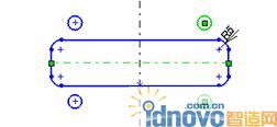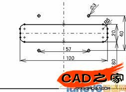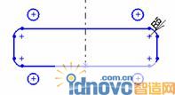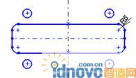 此次是在中心線的一邊畫一個孔之后通過使用鏡像工具在另一邊生成對稱形狀。