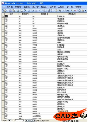 織機關鍵零部件數據庫的實現,主要是織機關鍵零部件分類信息的確定。本課題依據上述思想與理論,考慮到我國現行織機零部件的分類標準與實際情況,在對各種典型無梭織機進行系統化研究與分析、分門別類對織機關鍵零部件進行歸納整理、提取各類別關鍵零部件通用特征的基礎上,采用多級編碼制對相應織機零部件進行編碼,建立的相關數據庫如圖3所示,數據庫選用當前非常流行的Microsoft公司的Access 2003數據庫系統。在此基礎上,考慮到系統的開放性,使用VB 6.0語言開發了織機零部件信息處理窗體(如圖4所示)進行織機分類信息的查詢與維護等工作。