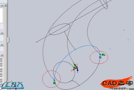 1先根據提供的線框,構建輪廓,這里主體部份,選用曲面掃描來實現,首先構建掃描路徑和引導線,引導線添加中點選項,圖中紅色圈出,大概位置如圖,這里取值R55
