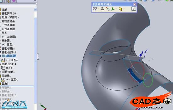 15利用刪除實體,和刪除面命令,刪除多余曲面,效果如圖所示,,下面就是曲面縫合