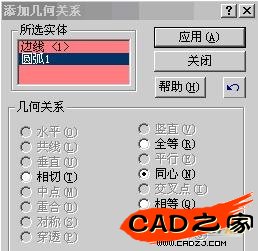 ③只有適合所選實體的約束才是有效的。大部分可能的約束自動被選中。