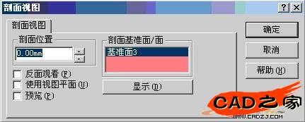 在任何時候你都可以顯示一個模型的三維剖面視圖。你利用模型的表面或平面來突出切平面。在這個例子中,你利用基準面3來作為剖切面。