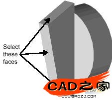 3、選擇圖示的三個面作為拔模面: