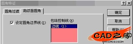 點擊"高級面圓角"標簽,選中:設定圓角邊界線,并選擇上圖中的HODE LINE作為:包絡控制線,點擊確定。