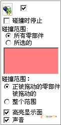 5. 如果選中"碰撞時停止",在在移動過程中,干涉時,零件無法移動,此時可以利用屬性標(biāo)簽中頂端的的對話中,強制移動零件到不發(fā)生干涉的另一側(cè)。