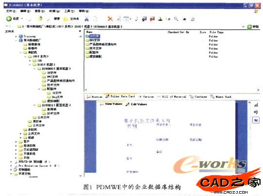 圖2 PDMWE中的產品結構樹和cDrawing瀏覽器