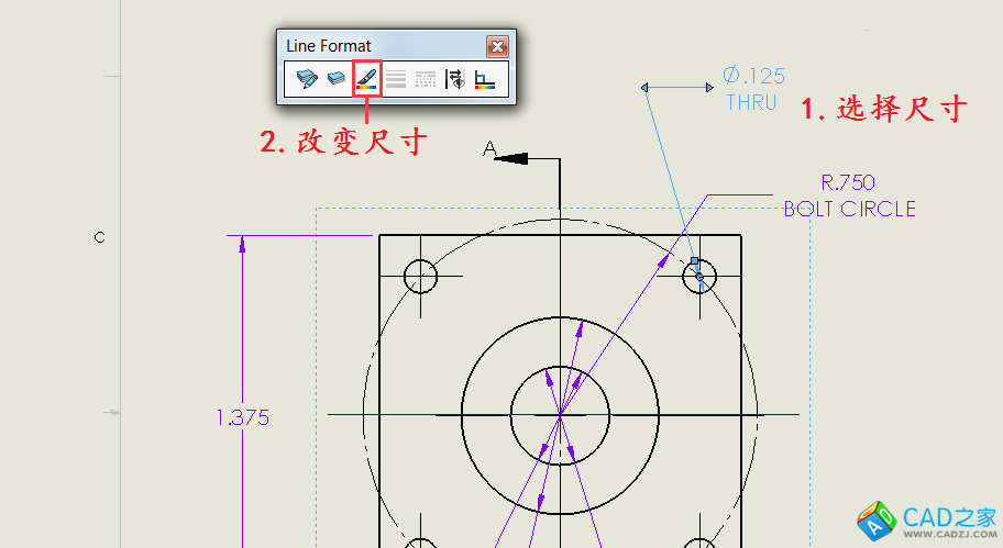 我們可以一次選擇一個或多個尺寸/注釋,然后從工具欄中選擇“線色”