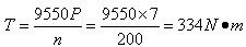 ,假設(shè)計電動機的功率為P=7KW,轉(zhuǎn)速n=200r/min,得出軸傳遞的轉(zhuǎn)矩