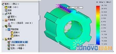 由于花鍵工作時受力的為整個工作面,理論計算中是將力加載于平均直徑dm上,而在solidworks中,我們根據(jù)實際工況,將力均勻的加載于整個工作面上,更符合實際。