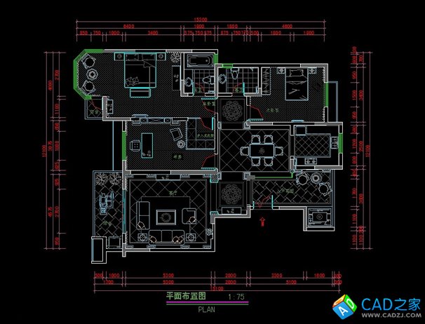 三室一廳兩衛歐式CAD全套施工圖免費下載