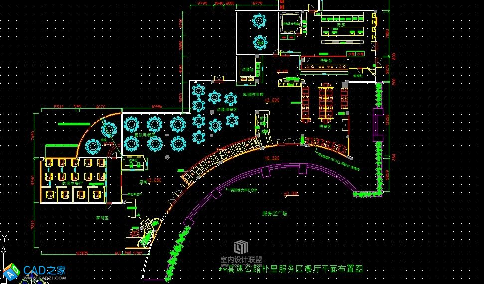 廈門(mén)某高速公路服務(wù)區(qū)中式餐廳裝修CAD施工圖附效果圖