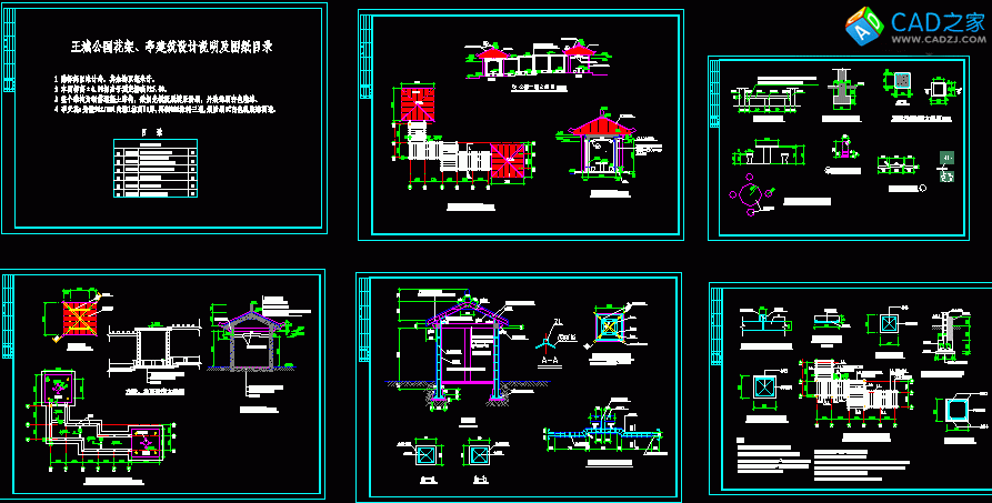 某公園花架、亭CAD施工圖免費下載