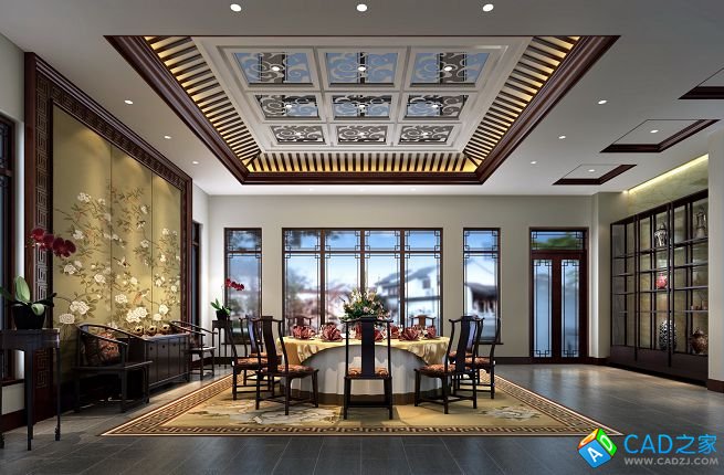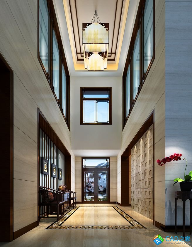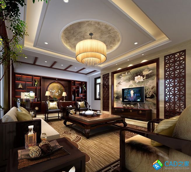 某中式別墅全套CAD施工圖帶高清效果圖下載
