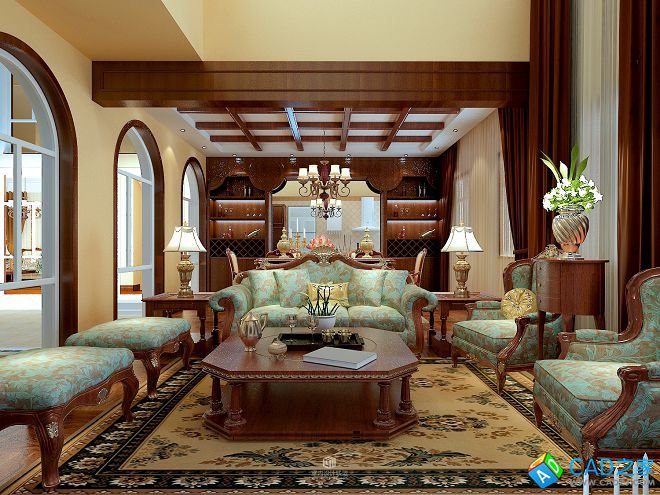 某別墅美式鄉村風格全套CAD施工方案圖下載