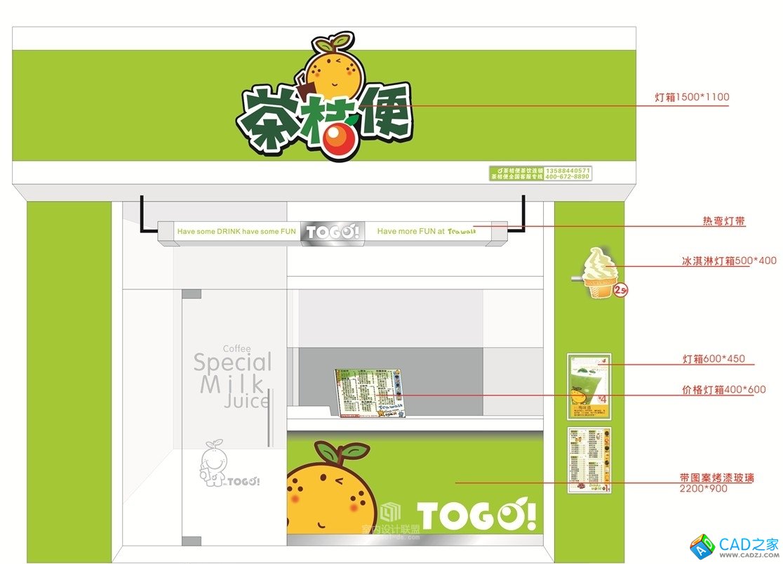 奶茶冷飲店面CAD設計裝修圖下載