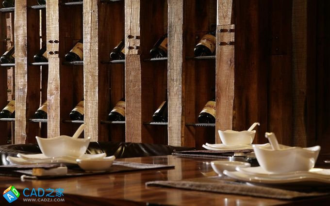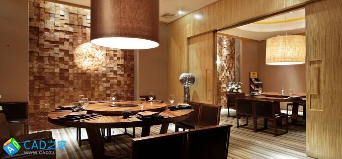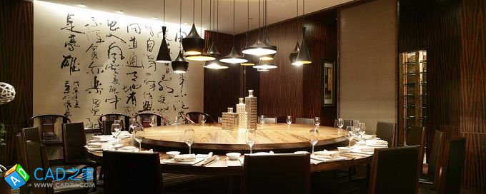 某中式時尚餐廳CAD室內裝修施工圖含實景圖