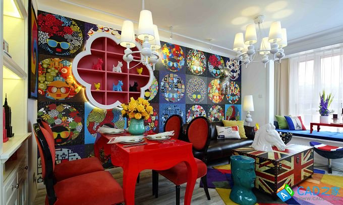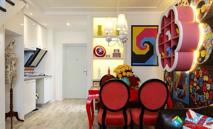 波普創意樣板間裝修設計施工圖+高清實景圖