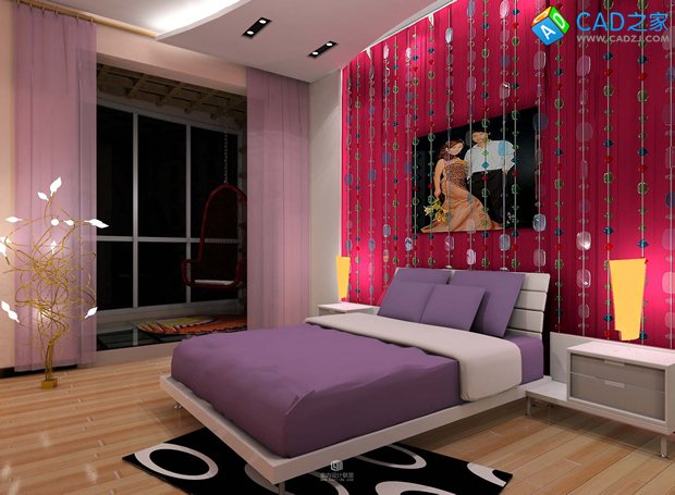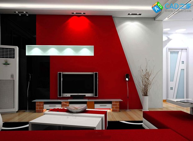 現代個性小戶型紅色婚房CAD圖及效果圖下載
