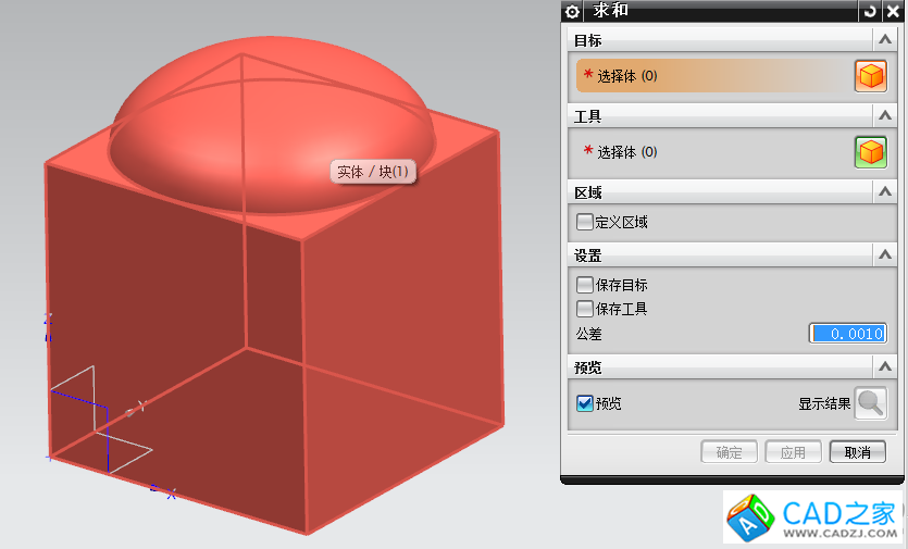 2、模型中有片體和實體,且需要組合成一個實體情況。