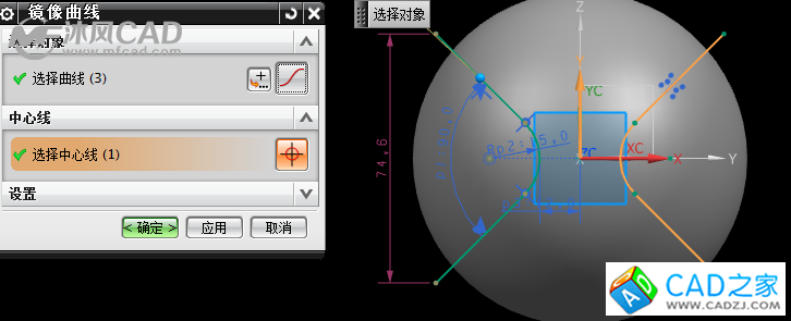 5、鏡像曲線,將繪制的草圖進行y軸對稱