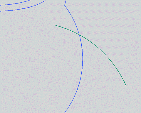 】功能,選擇橢圓的象限點(diǎn)和第(5)步的一個(gè)點(diǎn)建立如圖003的草圖。調(diào)用【編輯-曲線-全部-分割曲線】功能,分別從點(diǎn)處分割兩條曲線。如圖004所示。