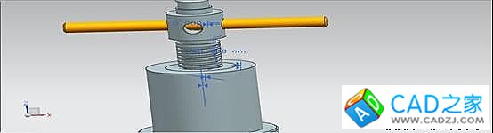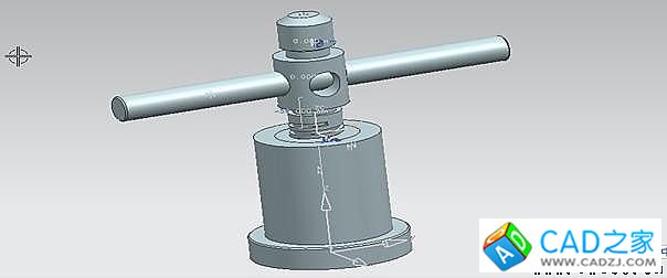 從頂部開始,繪制頂面。然后繪制五個凸臺,通過WCS構造兩個點,繪制兩個垂直相交的通孔。隱藏主體,重新定位原點。重復第五節繪制螺旋體,顯示主體,求差。
