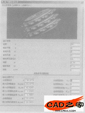 3)最后由得到的用于參考的主要結構尺寸,齒槽形狀尺寸和軸向齒廓尺寸。向鏈輪結構尺寸欄內(nèi)人工輸入尺寸。最終由這些尺寸驅(qū)動UG/OPEN API函數(shù)創(chuàng)建模型。