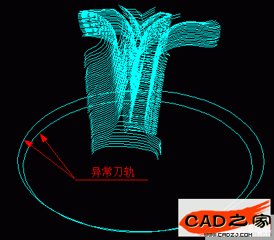 由此我們可以看出,異常刀軌是由于少輸出了一句,導致刀具軸在切削時沒有x、y定位時進行z軸切削。