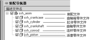 根據關鍵參數sxh_piston_dia和sxh_throw,對上述零件進行建模。這些零件都依賴于關鍵參數,當參數發生改變,零件模型相應作出更新,如圖3和圖4所示。