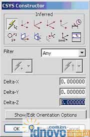 在 CSYS Constructor 對話框激活同時, 在選擇工具條 Name Selection 域中加入巳存坐標系名, 點擊 OK坐標系定位到命名坐標系,如圖2-3所示。