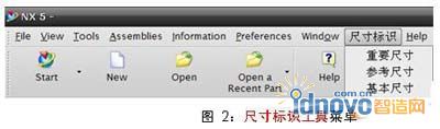 運行UG NX后在主界面上生成的尺寸標識工具菜單如圖2所示: